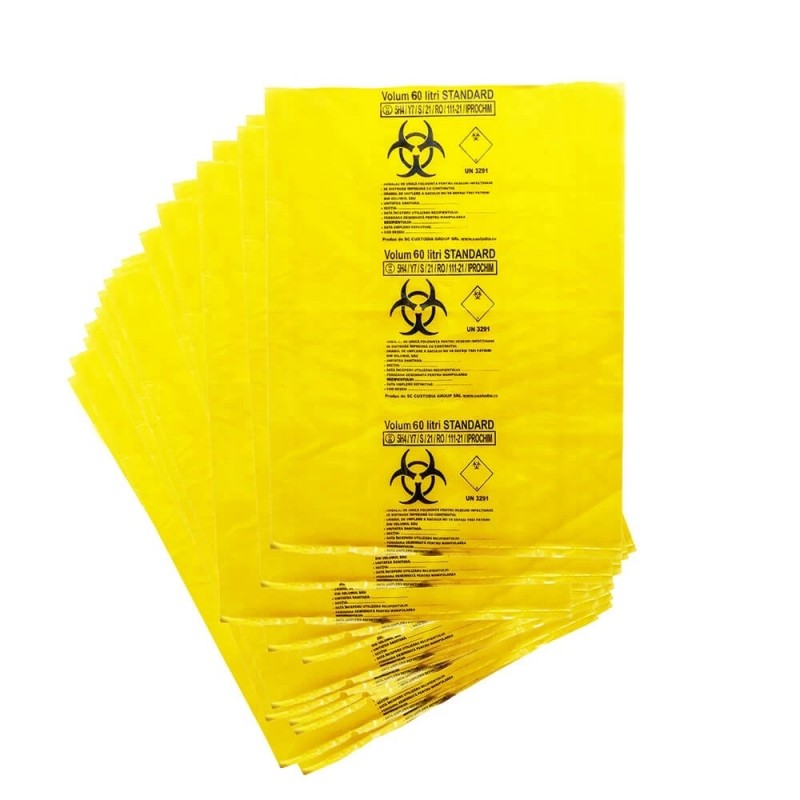 Saci galbeni pentru deseuri medicale inscriptionati "PERICOL BIOLOGIC" - 60 litri - 50 bucati