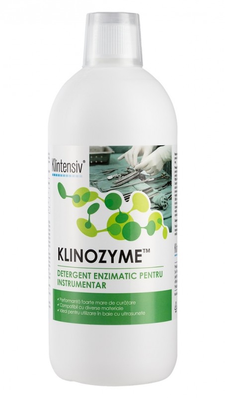 - Klinozyme de la Klintensiv este un detergent concentrat trienzimatic destinat curatarii in baia cu ultrasunete, in cea de imersie, prin spalarea conventionala a instrumentarului/dispozitivelor medicale sau prin reprocesarea automata a endoscoapelor