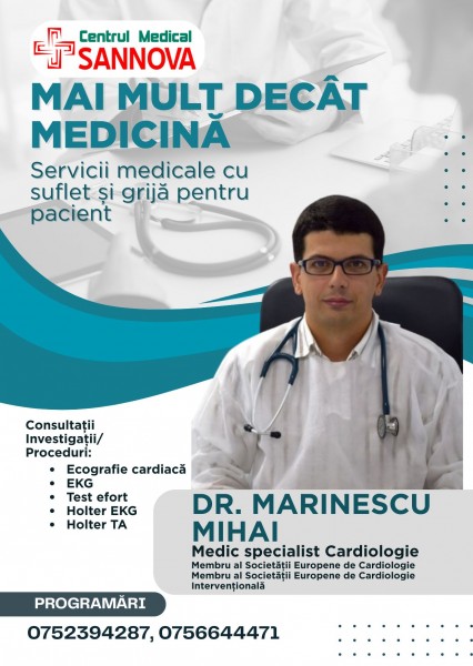 - Asigură-ți sănătatea inimii la specialistul nostru în cardiologie, Dr. Marinescu Mihai !