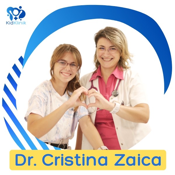 Dr. Cristina Zaica fondatorul și coordonatorul KidKlinik este medic specialist pediatru, supra specializat în oncologie și hematologie pediatrică, având o experiență de aproape 10 ani de muncă în cadrul Spitalului Clinic de Urgență pentru Copii „Louis Țurcanu” din Timișoara.