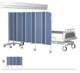 Paravan mobil pentru izolare și intimitate, pliabil, cu roți duble