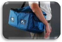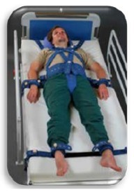 Sistem de imobilizare pediatric cu curele și geantă de transport.