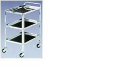 Troliu medical fabricat integral din otel inoxidabil AISI 304, 3 polite 0.7 mm grosime cu margini, 4 picioare 2 mm grosime, maner cu sectiune cilindrica de impingere, 4 roti pivotante - 80 mm diametru. Dimensiuni: 70cm X 50cm X 82cm (h).