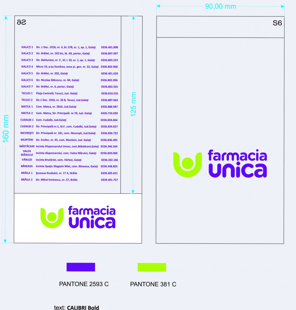 Universale si personalizate cu grafica si datele farmaciilor.