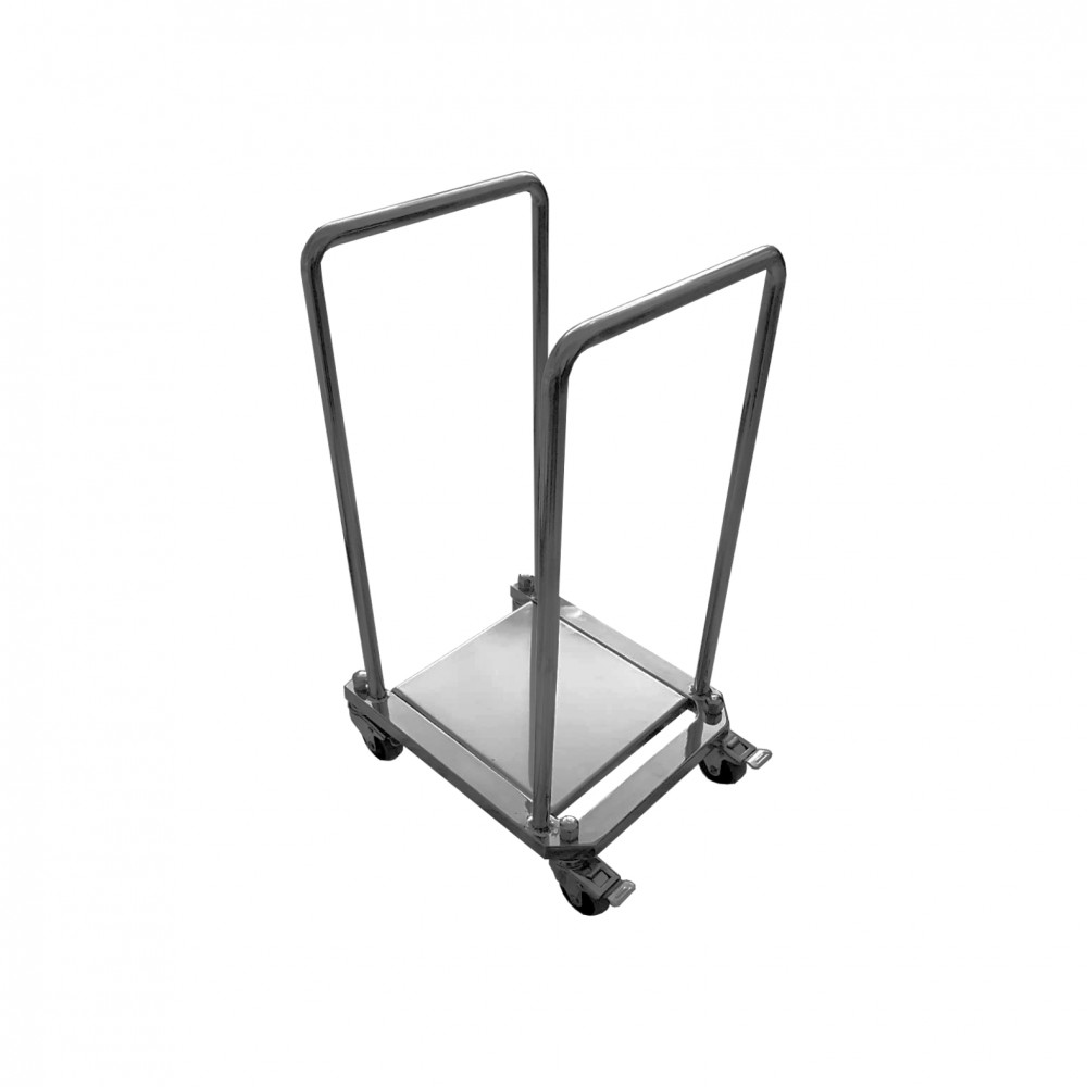 Suport mobil pe patru role pivotante cu autoblocare, din INOX AISI 304, pentru saci deseuri medicale, cu patru cleme de prindere incluse