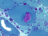 De multe ori acesti pacienti sunt diagnosticati initial cu polimiozita sau boala de neuron motor (datorita evolutiei mai lente si atrofiei musculare). Un mic numar de pacienti pot mosteni aceasta afectiune, insa pentru majoritatea ea este dobandita sporadic.