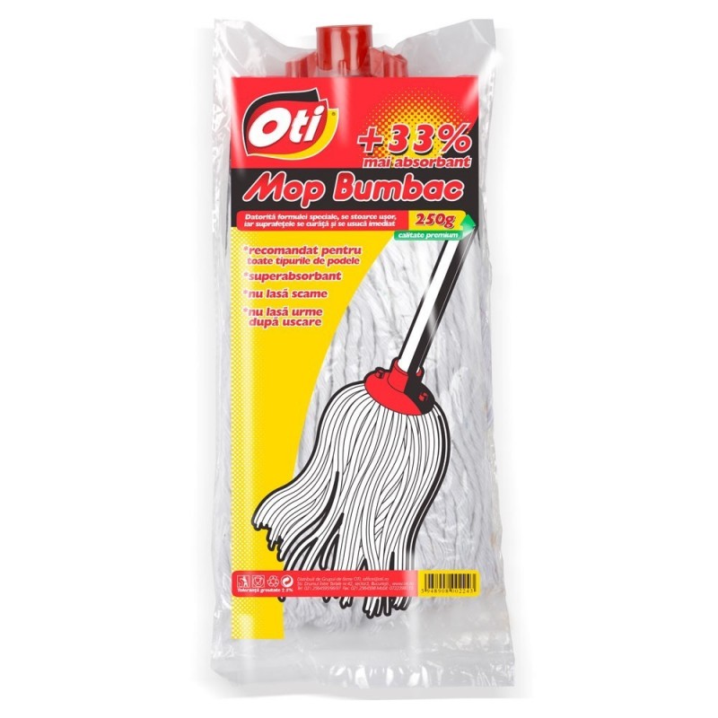 - Mopul din bumbac este prevazut cu filet, are o greutate de 250 grame si este ideal pentru spalat pardoseli