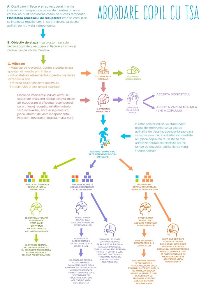 3.2 Daca la primirea diagnosticului abordarea a fost unicista, si anume “autismul nu este o boala, fac doar terapie”, atunci recomandam abordarea pluridisciplinara. Daca in urma abordarii pluridisciplinare ritmul de invatare creste la 6-8 luni pe an, se continua tratamentul si terapia cat timp acest ritm se mentine.