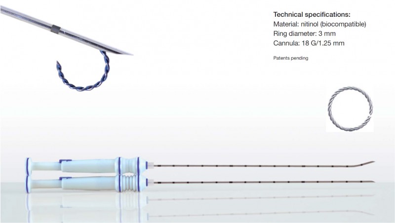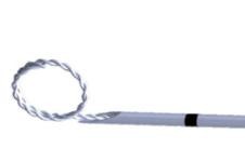 - Sperforma rotunda cu impletitura duble asigura ancorarea precisa in tesut eliminand riscul de migrare a a reperajului, totodata forma speciala impreuna prin impletitura dubla a marcajului creste vizibilitatea clipului la control ecografic