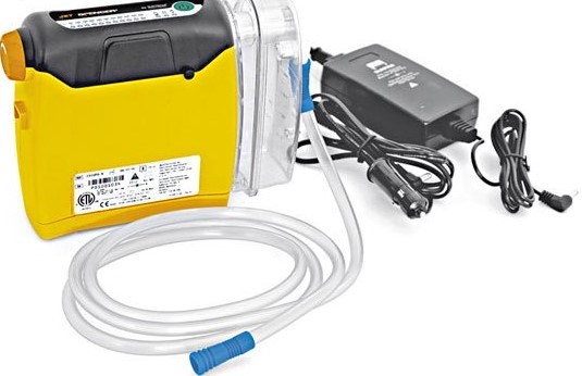 Dispozitiv de aspirare compact pentru îndepărtarea fluidelor din caile respiratorii sau a sistemului de respirator.