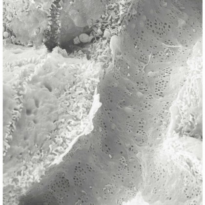 foto: Scanare a unui mic vas de sânge din ficat, care conține multe ferestre (puncte mici, gri închis). © HHU/Sydney Balkenhol