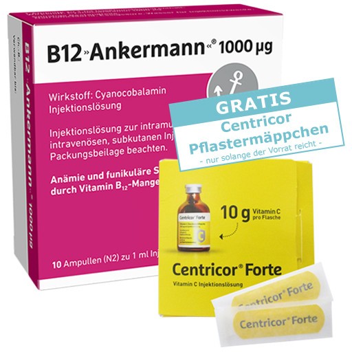 B12 Ankermann1000uq injektabil10x1ml Germani este un supliment alimentar care conține vitamina B12 sub formă de cianocobalamină. Acest produs este disponibil sub formă de 10 fiole injectabile, fiecare fiolă conținând 1 ml de soluție.