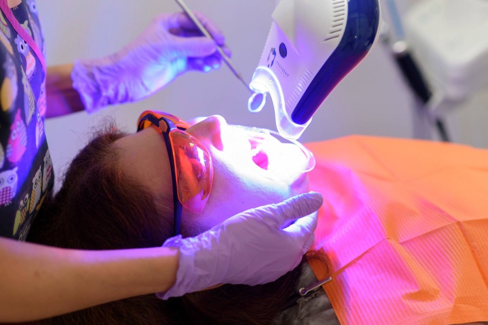 Clinica dentara Ortodent foloseste materiale de albire BriteSmile. Procesul de pregatire a pacientului impune protejarea gingiei cu o pasta care se intareste cu ajutorul lampei cu ultraviolete. Medicul ortodont o foloseste pentru a reduce riscurile de ardere chimica a tesuturilor moi expuse gelului de albire.