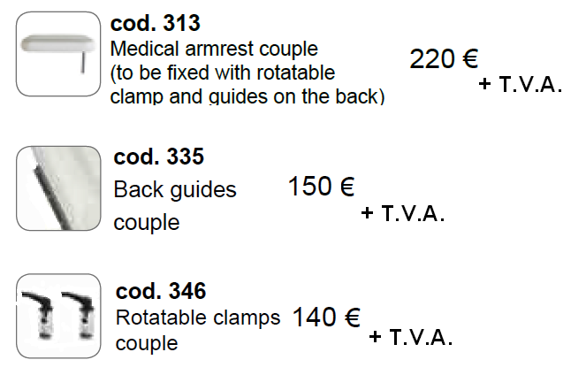 •cotiere multifunctionale tip medical cu sistem de fixare: 510 € plus T.V.A.