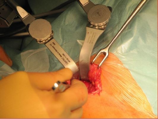 Sistem retractor Maxop pentru chirurgie tiroidiana cu clemă de soclu si suport de lame brevetate.