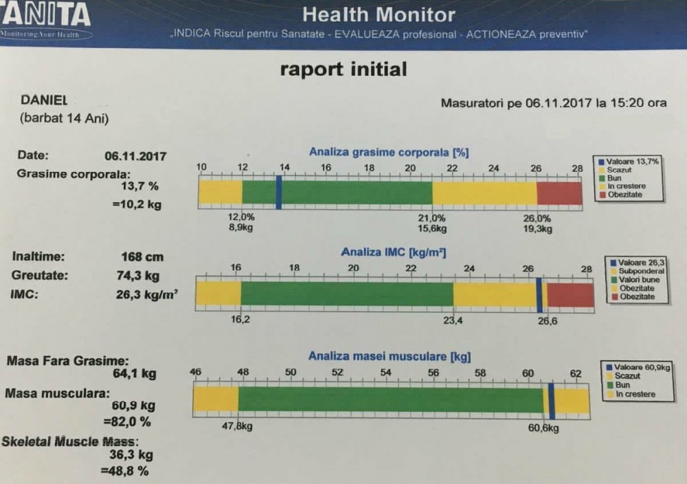 | Grăsime corporală % | 20,3 | 13,7 |