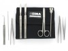 Trusa standard de instrumente chirurgicale fabricate din oxel inoxidabil ce cotine 9 piese: sonda 15 cm - Ø 2 mm sonda fluture 14 cm scalpel drept 17,5 cm scalpel rotunjit 17,5 cm pensa anatomica 14 cm pensa chirurgicala 14 cm -...