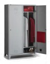 Model MET-2FFC DESCRIERE : • Dulap dublu cu ”sistem alb negru” • Dulapurile au perete despartitor si sunt solutia cea mai potrivita, deoarece se pot separa comod si igienic hainele de strada de cele de lucru, într-un singur compartiment • Prevazut cu loc pentru pan...