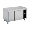 Masă de lucru din oțel inoxidabil cu uși glisante.COD: TI7MASĂ DE LUCRU CU DULAP ȘI UȘI GLISANTE COD. TI7MATERIAL UTILIZAT: Oțel inoxidabil AISI 304, finisaj Scotch Brite, grosime 1 mmNORMATIVE: Alegerea componentelor, asamblarea și finisajele sunt realizate cu grijă în conformitate cu normele stricte europen...