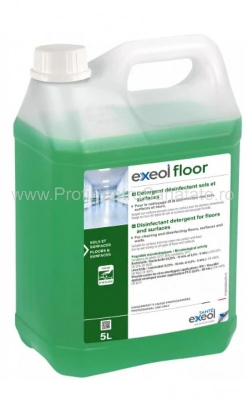 Exeol Floor, dezinfectant concentrat suprafete, 5L este ideal pentru utilizarea in centre medicale, spitale si nu numai datorita puterii mari de distrugere a virusuri, bacteriilor si a microbilor dar si a fungilor, activandu-se in 15 minute de la aplicare.
