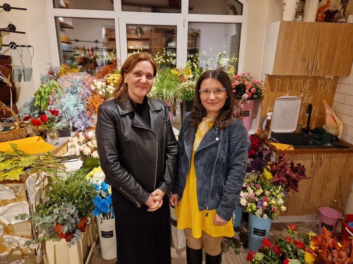 Și pentru că ne-am dat întâlnire la o cafenea - florărie, gazda noastră a făcut doamnelor o surpriză dăruindu-ne câte un trandafir.