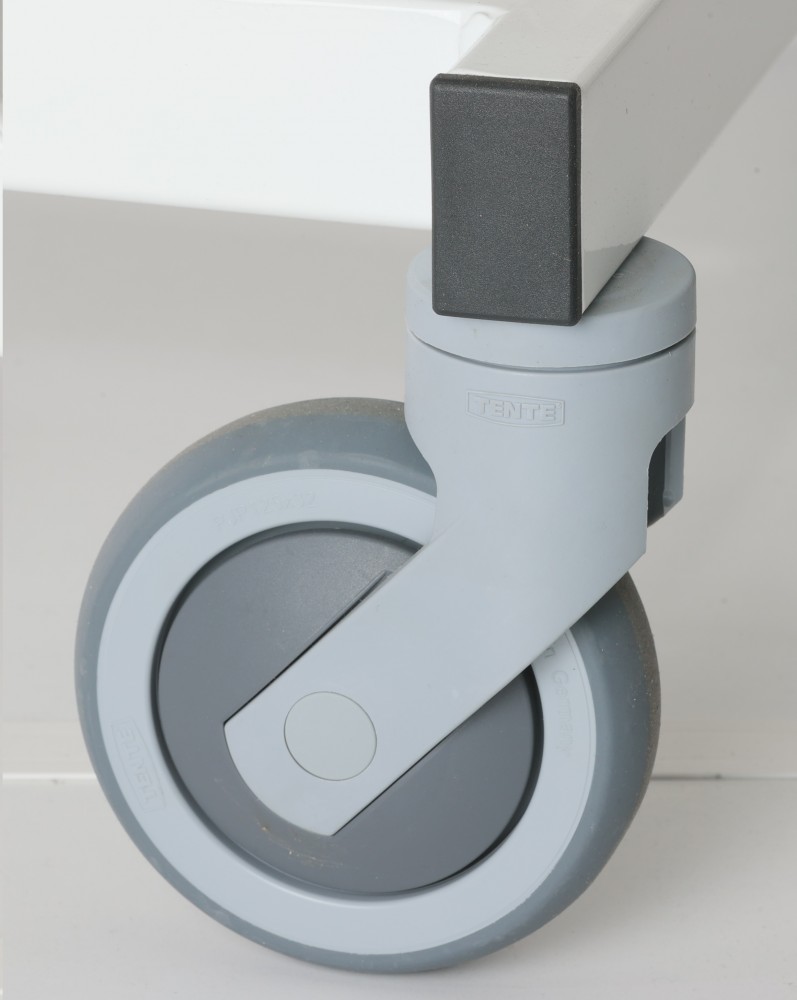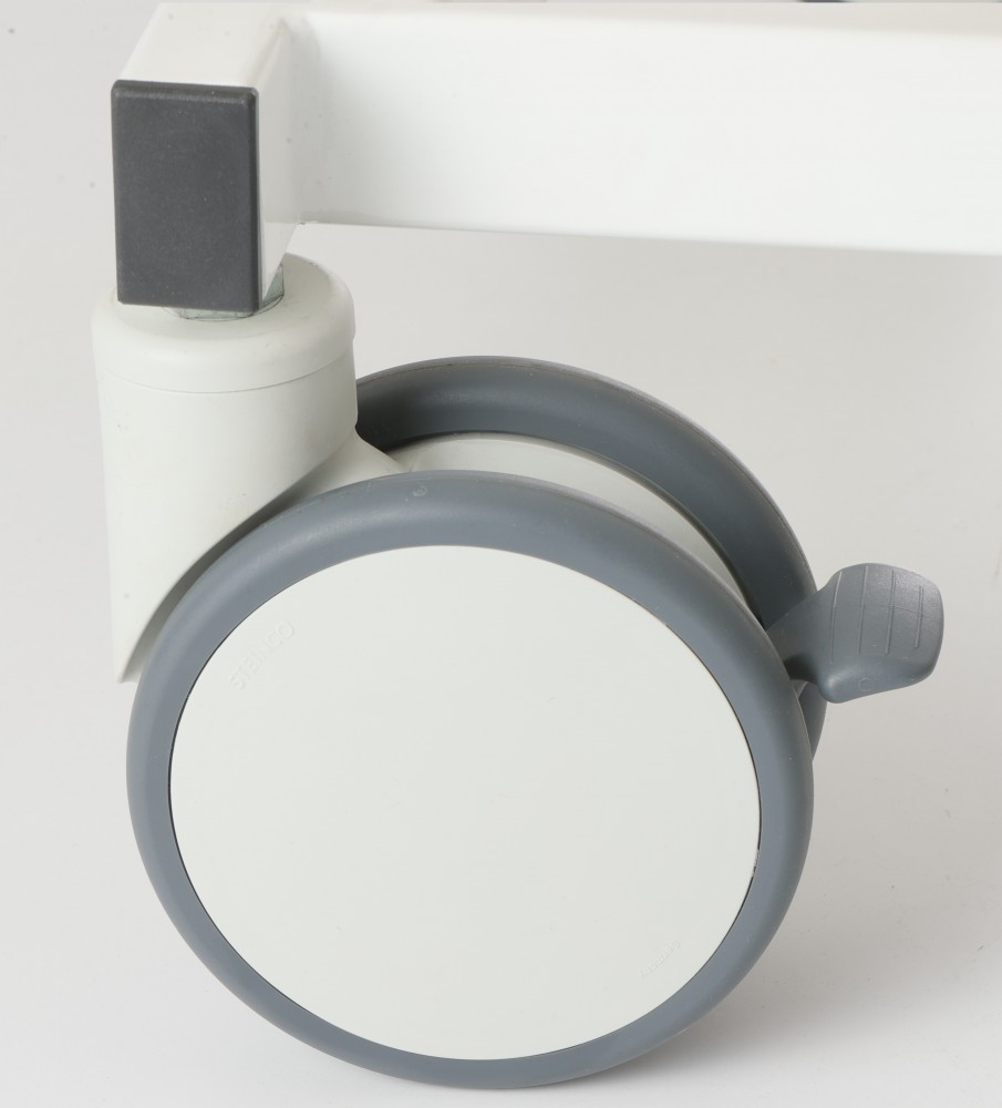 - Roti simple sau Roți duble cu diametrul de 150mm, cu sistem de frânare individual.