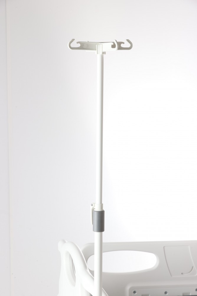 - Suport perfuzie reglabil pe înălțime in intervalul 800-1400mm, cu 4 cârlige, ce poate fi poziționat în oricare din cele 4 colțuri ale patului.