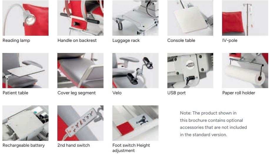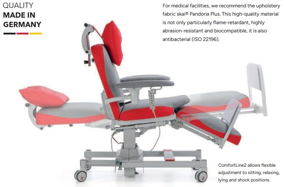 Fotoliul Comfort Line2 a fost special conceput pentru a satisface nevoile centrelor de tratamente ambulatorii, dializă, oncologie, donare de sânge și plasmă. Acopera toate tipurile practici clinice.
