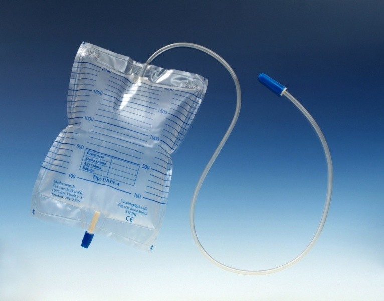 Saci colectori de urină din poliuretan, transparenți gradați cu robinet de evacuare şi valvă antireflux pentru a împiedica revenirea urinei, prevenind apariția infecțiilor urinare;