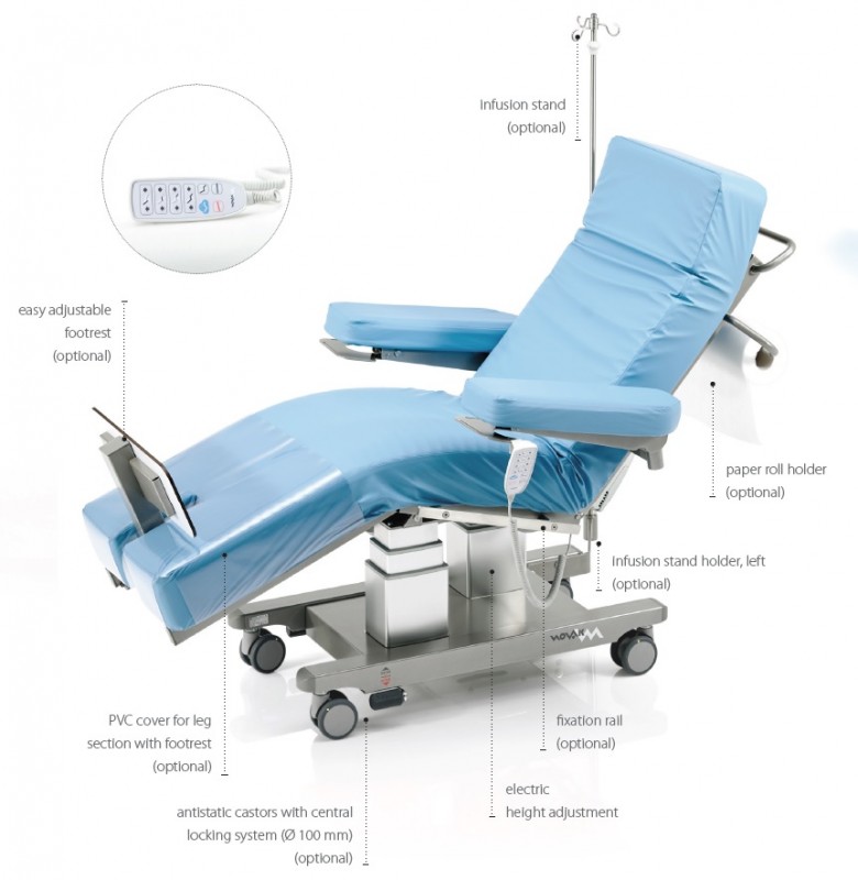 - • Scaun de dializa foarte confortabil pentru pacientii cu tratamente indelungate, cu inaltime fixa si telecomanda.