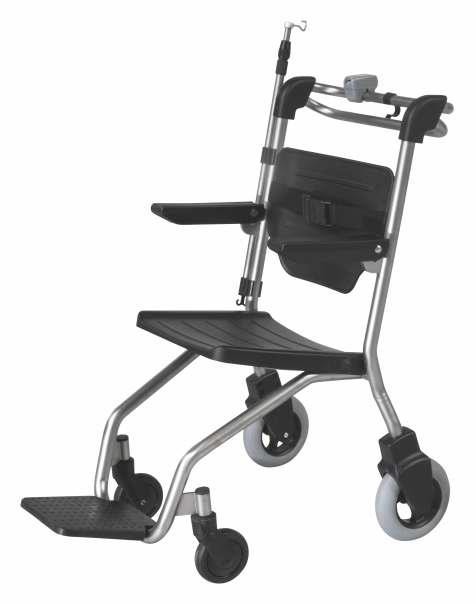 Include suport pentru solutii perfuzabile, cu inaltime reglabila, confectionat din otel inoxidabil