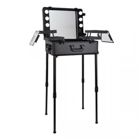 Statia profesionala portabila de make-up este un produs modern si foarte rezistent, ce se transforma foarte usor din valiza incapatoare si practica, perfecta pentru depozitarea si transportul produselor si instrumentelor de make-up, in statie de make-up complexa, ideala pentru desfasurarea activitatii in diferite locuri.