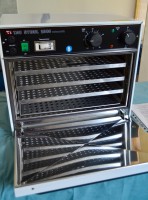 Vand sterilizator cu aer cald Tau Steril 2000, nou, nefolosit. A fost cumparat pentru dotarea unui cabinet, dar a stat nefolosit. Functioneaza la 220 V, putere 600 W, 3 sertare perforate, timp reglabil: 0 - 120 min, temperatura reglabila: 90 - 200°, dimensiuni: 376 x 200 x 230 h, volum 20,7 l.Trimite un mesaj către Ernest Valea:
