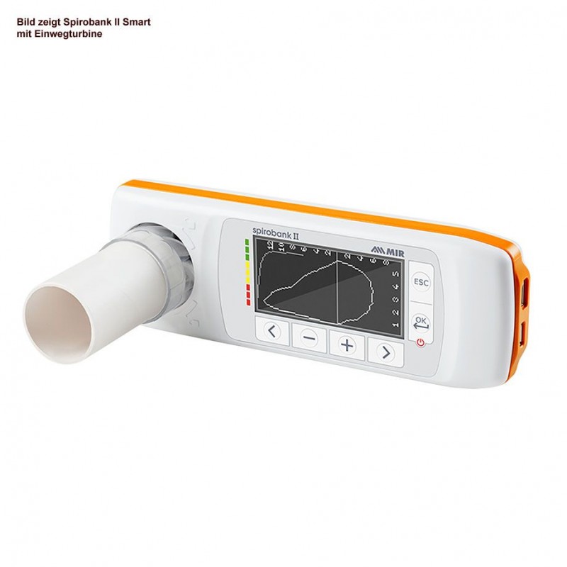 Spirometru Spirobank II Smart – cu Bluetooth, cu Turbina de unica folosinta FlowMIR – cu piesa bucala din carton, software MIR Spiro