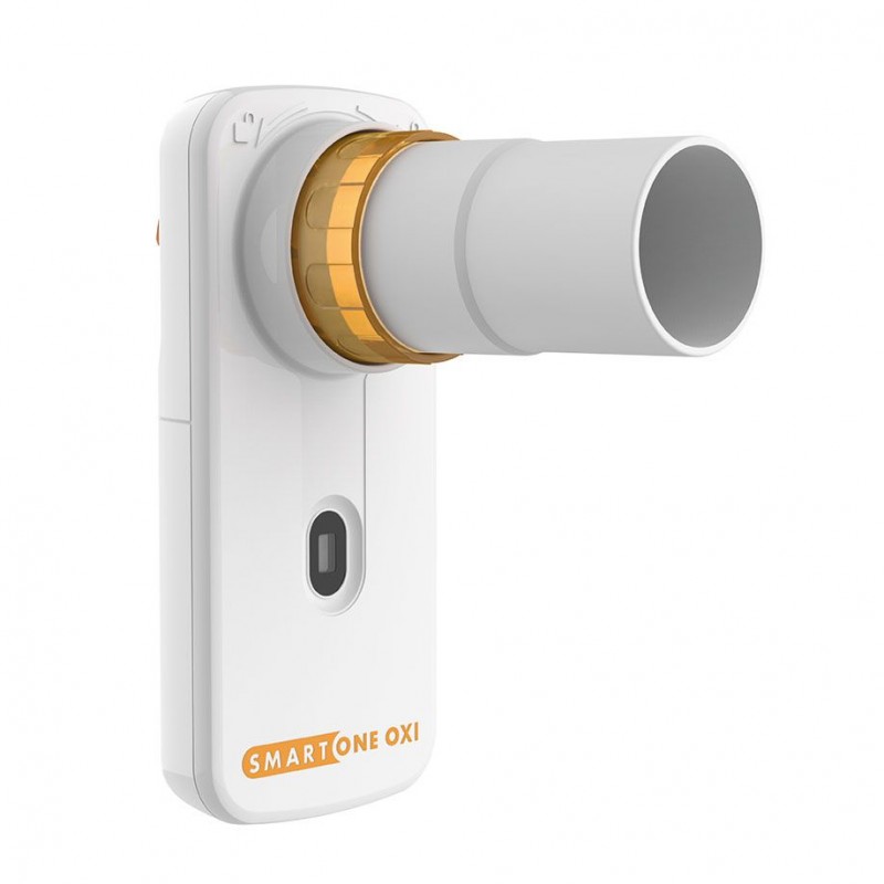 Smart One Oxi este un spirometru portabil pentru masurarea PEF si FEV1, care permite monitorizarea rapida si simpla a functiei pulmonare. Este ideal pentru pacienti cu boli respiratorii precum astm, fibroza chistica, BPOC sau astm indus de efort.