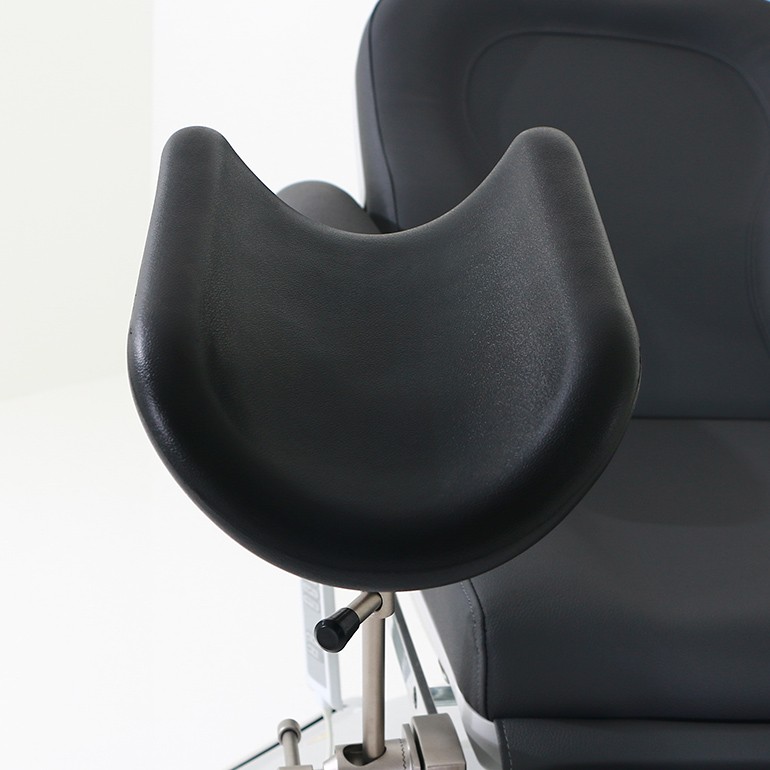 Scaun de ginecologie de lux cu structura foarte stabila special conceput pentru a optimiza spatiul de lucru datorita rotatiei sale de 120°.