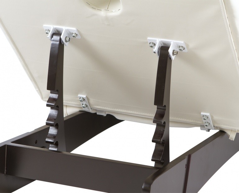 sub pat. Spătar reglabil în diferite poziții fixe. Orificiu de respirație și pernă pentru tetieră. Tapițerie PVC de culoare crem care ușurează curățarea. Suport role de hârtie inclus.