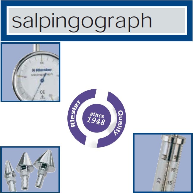 - Salpingograf Riester® destinat pentru diagnosticarea sterilitatii si efectuarea de salpingografii sau introducerea substantelor de contrast în vederea efectuarii de investigatii radiologice ale uterului sau pentru desfundarea trompelor prin insuflatie cu aer.