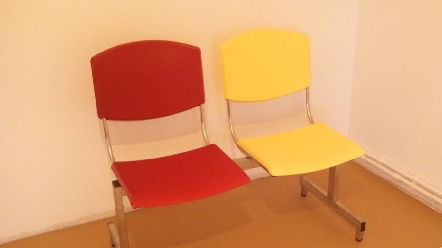 Bancuta de asteptare cu 2 locuri , cadru inox, picioare inox, sezut si spatar din plastic.