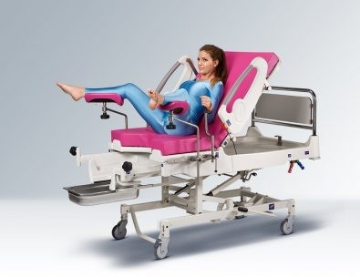 Patul de livrare este echipat cu un set de două saltele, o saltea nou-născută, mânere de mână, suporturi pentru picioare, genunchi și un bol din oțel inoxidabil. Montarea și dezasamblarea accesoriilor este facilitată de o șină specială.