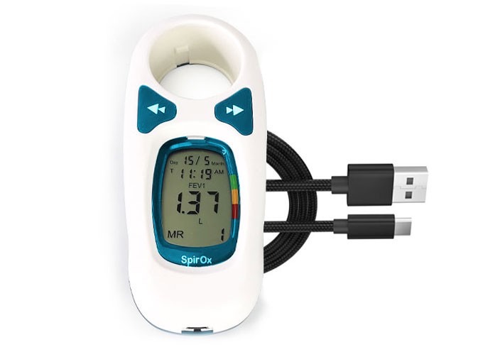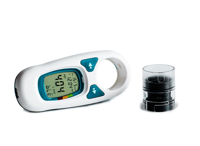 - Spirometru de dimensiunea unei palme cu ecran LCD
