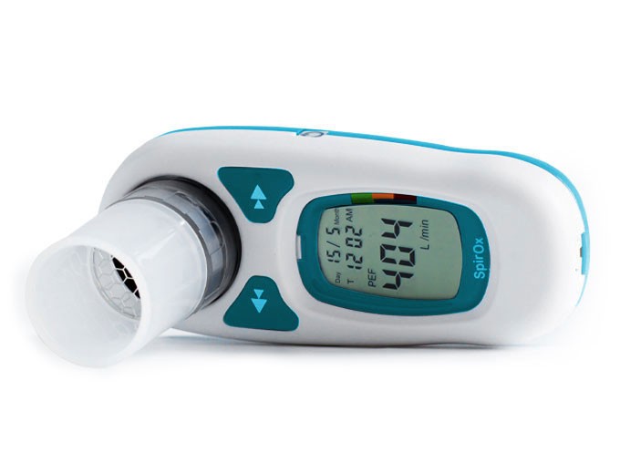 Măsoară atât PEF (fluxul expirator maxim), cât și FEV1 (volumul expirator forțat în prima secundă)