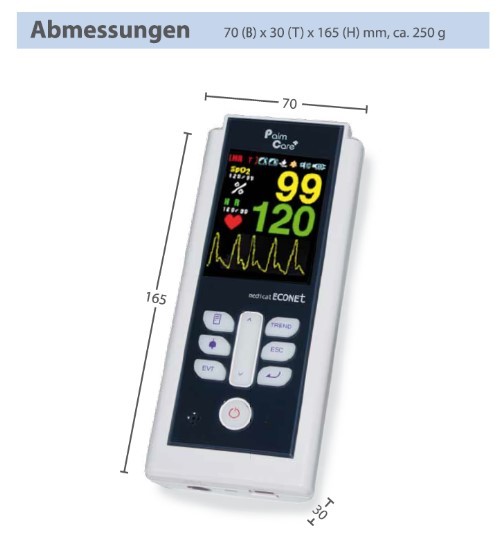 Pulsoximetru PalmCare Plus• Valori SpO2, ritm cardiac, undă puls, nivele alarmă, calitate semnal