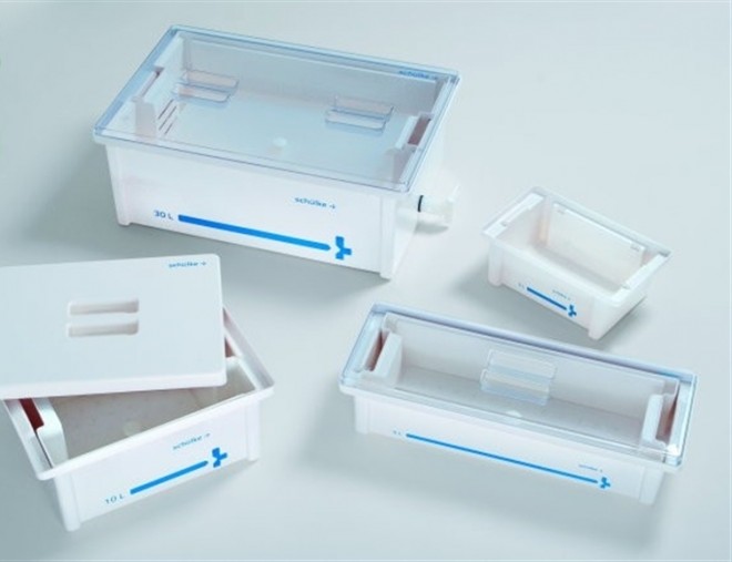• Vanele Schulke&Mayr pentru intrumente, cu volum de 3, 5, 10 sau 30 de l, asigura o dezinfectie, curatare si intretinere, simpla si igienica a instrumentelor de orice fel.