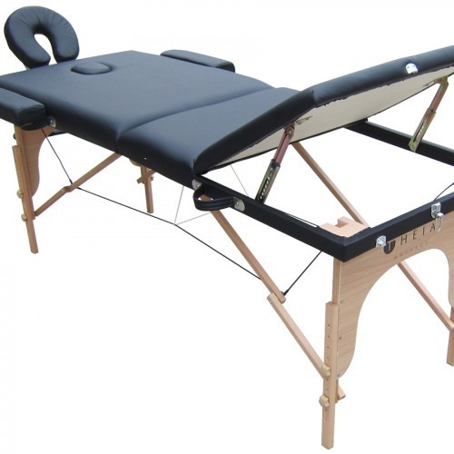 Masa masaj pliabila din lemn masiv de fag cu o sectiune rabatabila.