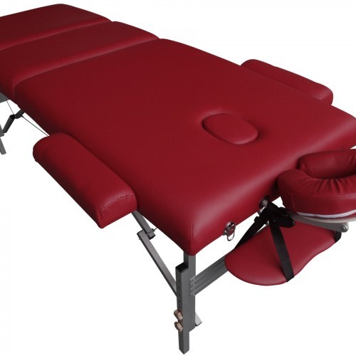 Masa de masaj pliabila din aluminiu cu o sectiune rabatabila.