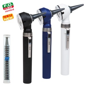 PICCOLIGHT LED - Otoscop cu iluminare cu fibra optica, bec LED 2,5V, ~8.000luxOtoscoape PICCOLIGHT(marire: 3X, maner de plastic pentru baterii, dotare: 20 speculi unica utilizare (10 buc.Ø2,5mm/10 buc. Ø4mm), etui material textil, culori: negru,albastru,gri)