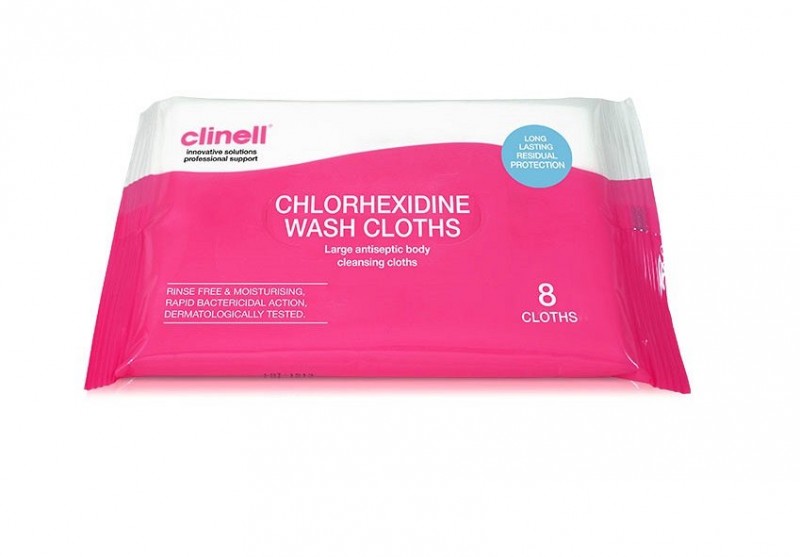 MĂNUȘI SPĂLARE PACIENT CLINELL CHG 2%, 8 BUCĂȚI IN PACHET