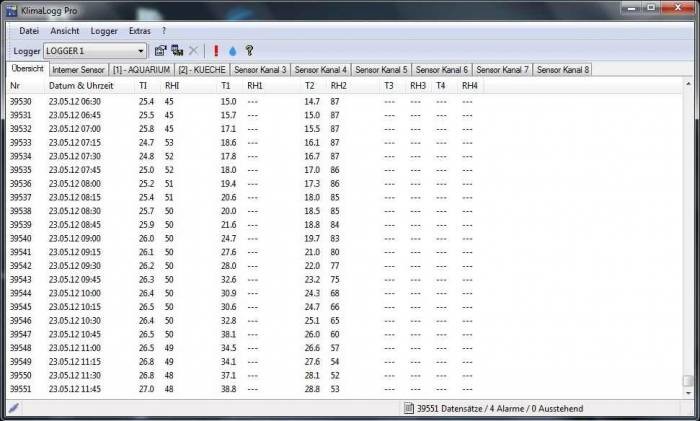 Data logger pentru controlul temperaturii (precizie ± 1 ° C) si umiditatii (precizie ± 3% la 35 ... 75%), extensibil cu până la 8 emitătoare, indicarea punctului de rouă, functie max-min, cu inregistrare timp si data, alarma la valorile setate pentru temperatura si umiditate (limită superioară / inferioară), functia de eveniment alarma, logger de date cu până la 50.000 de valorimăsurate, afisate prin intermediul ecranului sau interfata PC, iesire USB, comutare on/off, ceas controlat prin unde radio, data, fusul orar ± 12 ore.