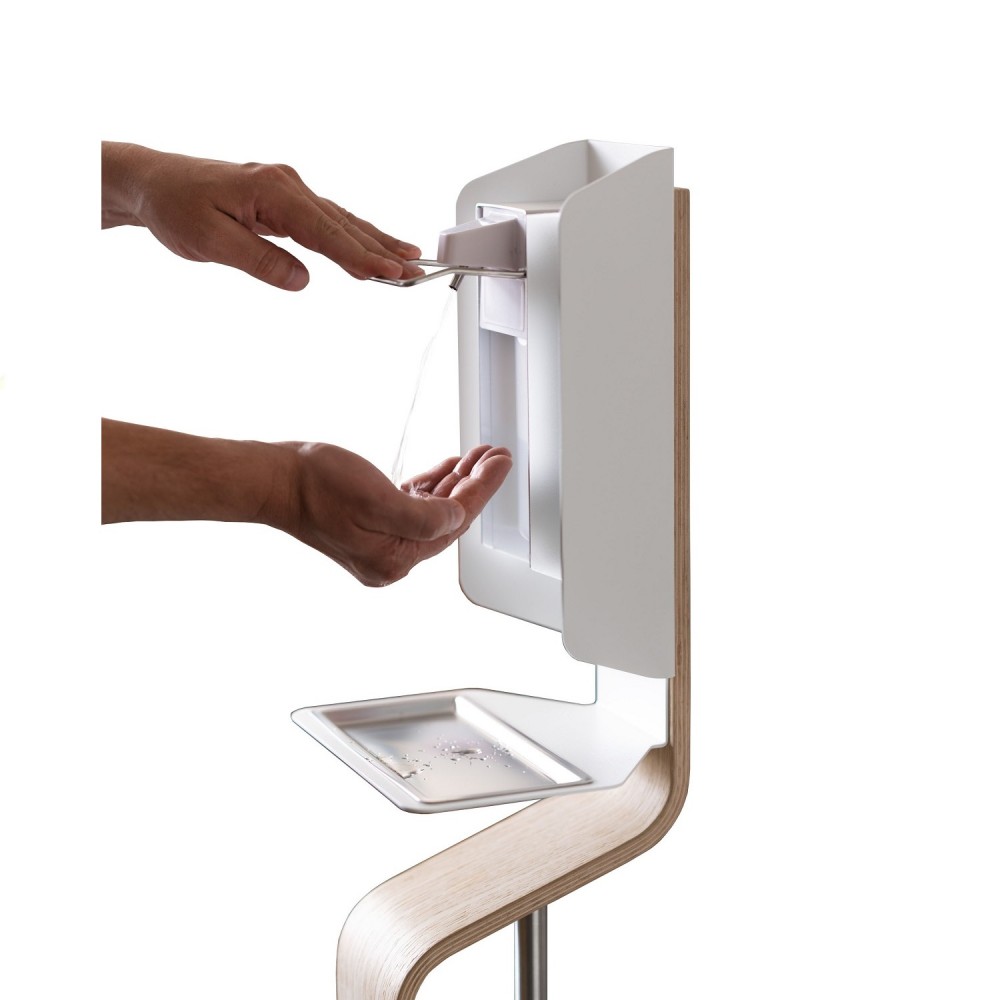 H.U.G.O. este mai mult decât un dozator de dezinfectant. Arată ca o piesă de artă realizată din lemn fin cu aspect natural. Modelat într-un proces de fabricație complex și rezistent la influențele mecanice sau chimice datorită unui strat de suprafață invizibil, este o piesă de design dovedită care transformă un „must” într-un „must have”. Eleganță și funcție într-un singur produs, motivând perfect oamenii să-și dezinfecteze mâinile.